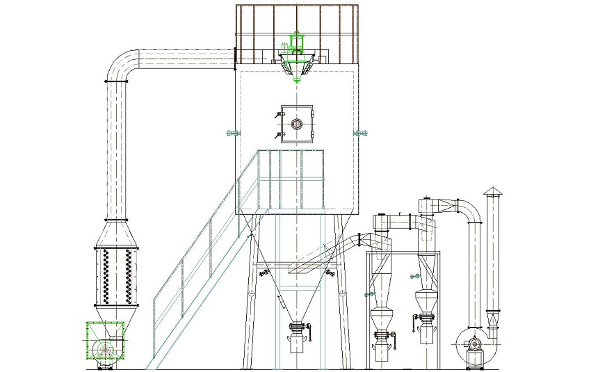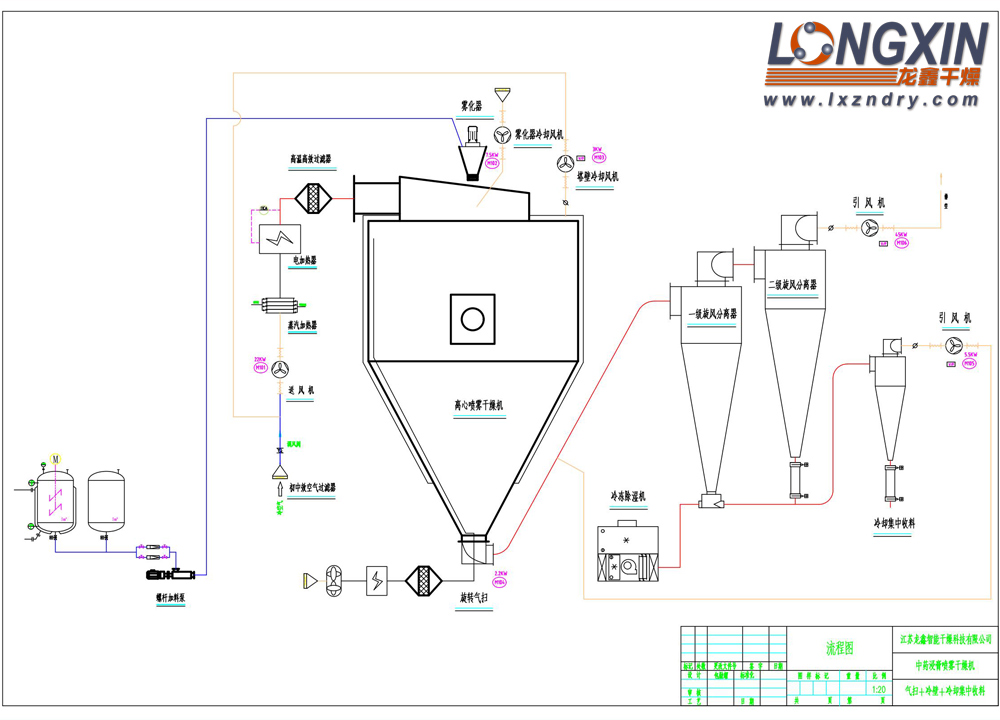 离心喷雾干燥机 工艺流程图3——冷壁+气扫+冷却输送+集中收料