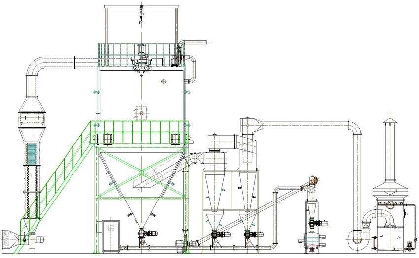 离心喷雾干燥机 工艺流程图2——冷却输送+集中收料