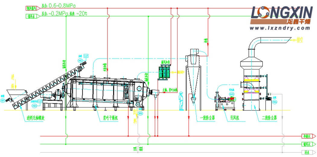 空心桨叶干燥机 工艺流程图3——桨叶、盘干串联