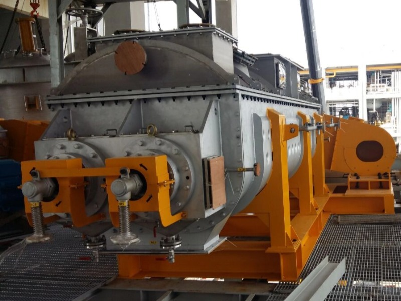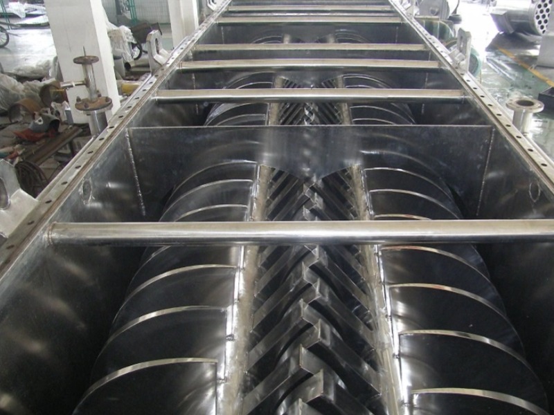 (4) 轴向区间内,温度、湿度、混合度的均匀性,使得设备可用来加热或融化,或进行一些固体物料反应。在复合肥及变性淀粉行业均已成功使用。 桨叶干燥机可用来对食物和面粉进行灭菌处理。单位有效容积内大的加热面积,很快就将物料加热到灭菌温度,避免了长时间加热而改变物料品质。