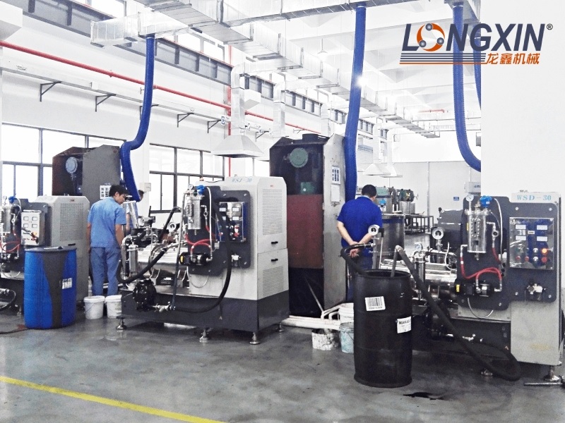 龙鑫产线采用多级梯度分散策略:首先通过WSP-SL高效预研磨机进行初步解团聚,再结合高剪切在线乳化系统,确保颜料表面被分散剂充分润湿包裹,为后续纳米级研磨奠定稳定基础。